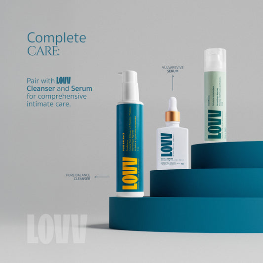 The LOVV Vulva Cleanser is a perfect mix of gentle and effective. It leaves me feeling clean and refreshed without any irritation, and the lightweight formula is so soothing. The combination of hyaluronic acid, probiotics, and prebiotics feels super nourishing, and it fits easily into my self-care routine. I also love pairing it with the serum and moisturizer for an all-around great experience. Definitely a must-have!